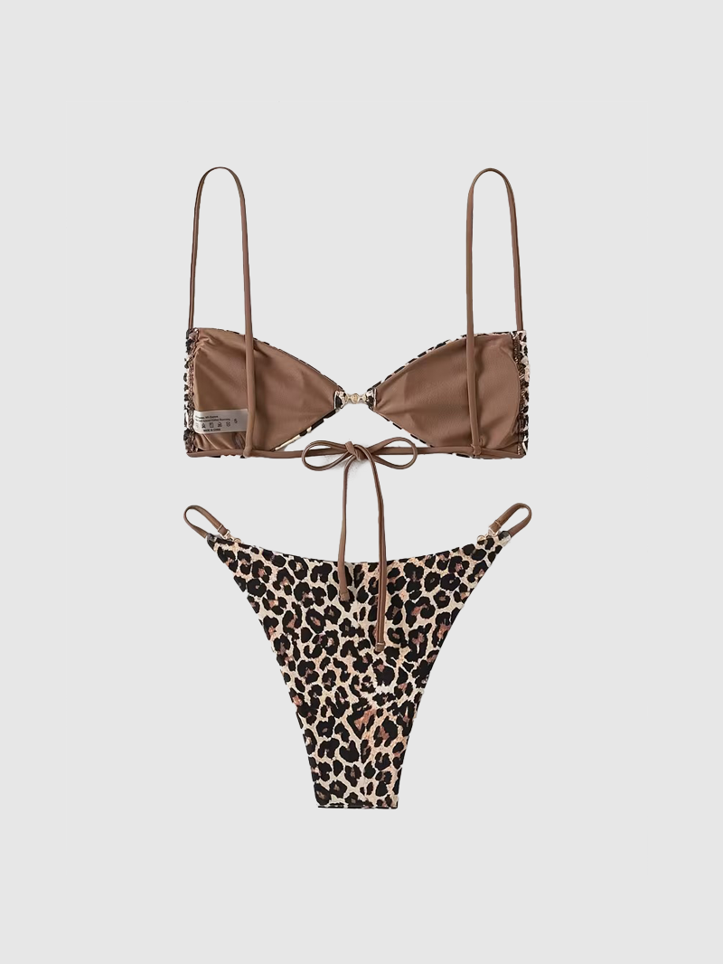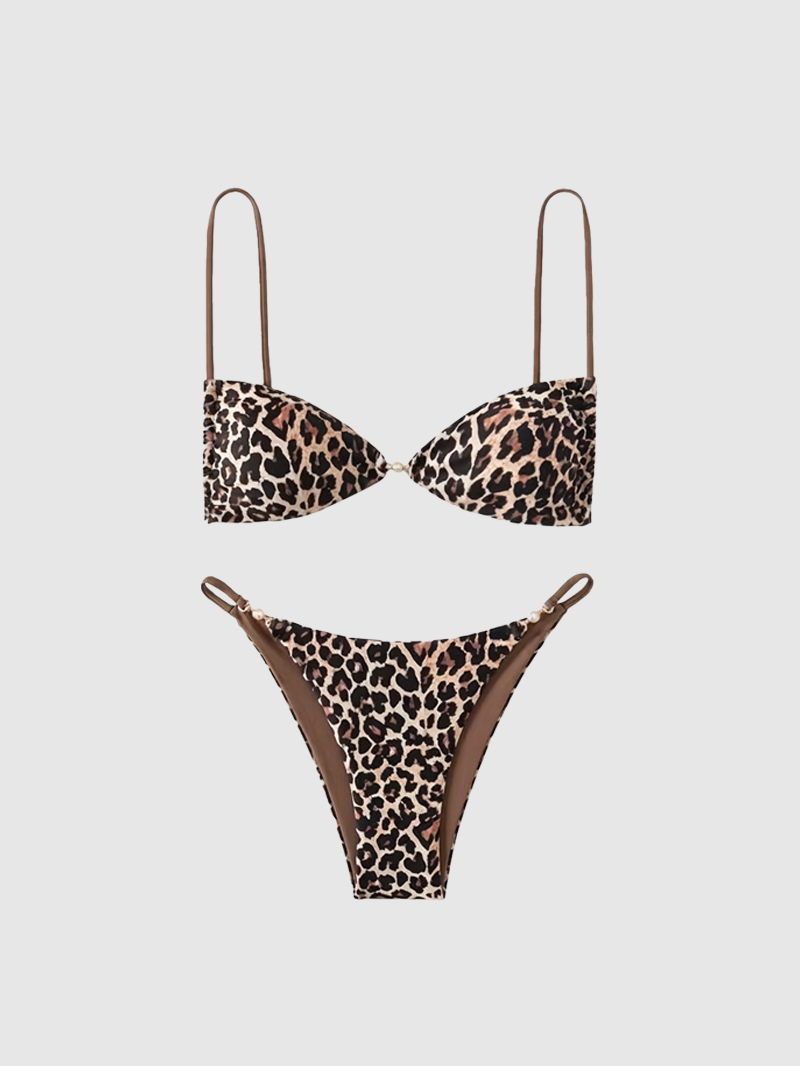Make a bold statement with Leopardra, the three-piece bikini set that blends fierce style with luxury. Featuring a striking leopard print with golden accents, this set exudes confidence and glamour. The high-waisted bikini bottoms provide a flattering fit, while the sheer cover-up skirt adds an elegant touch, perfect for transitioning from beach to poolside. Crafted from a high-stretch polyester/elastane blend, this set offers comfort, flexibility, and a perfect fit. Machine washable for easy care, Leopardra ensures you’re always ready to shine wherever you go.
